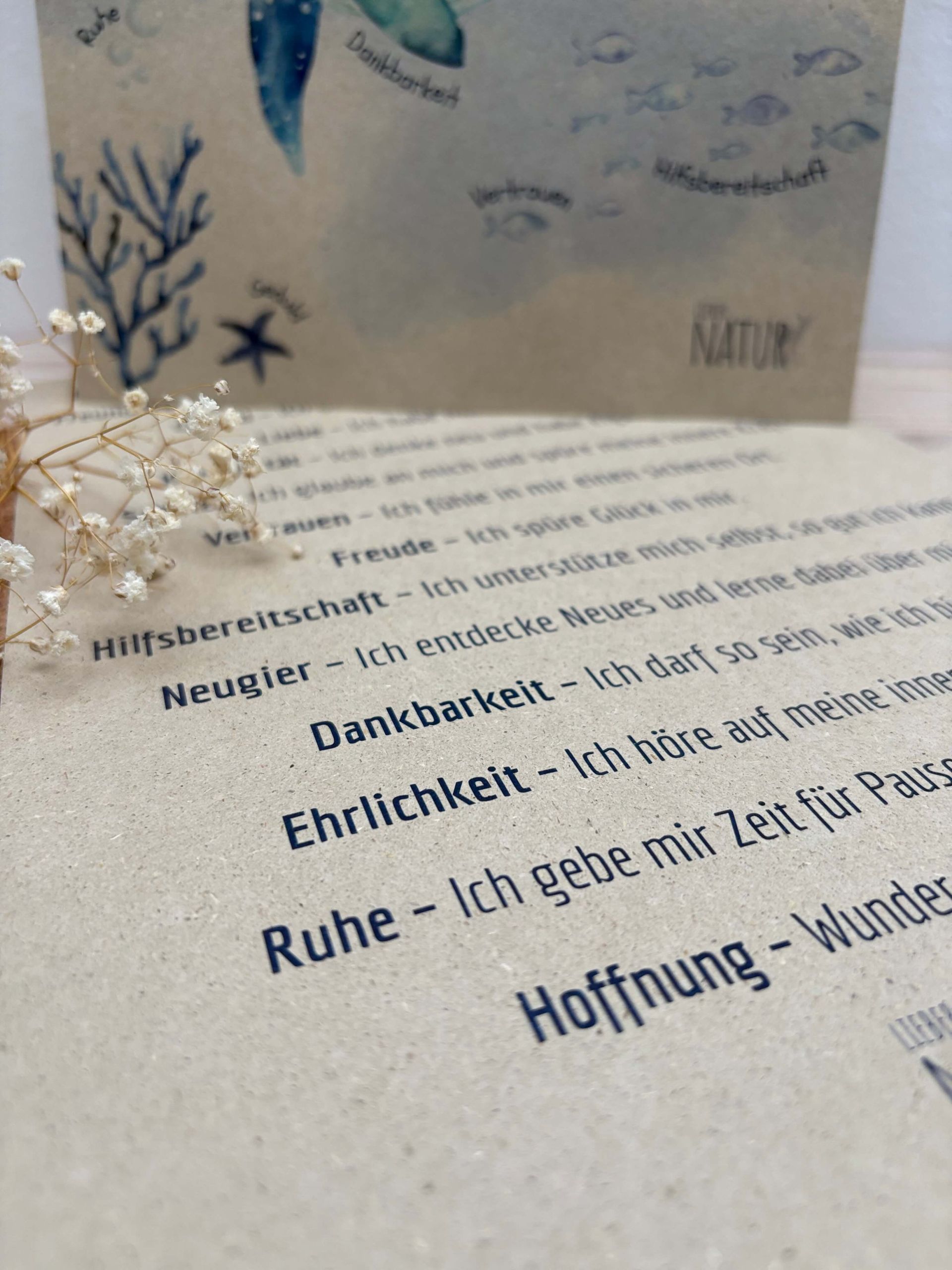 Mit starken Botschaften und unserem beliebten Wal im Fokus, gedruckt auf Graspapier für Achtsamkeit, Selbstbewusstsein & positive Rituale im Alltag